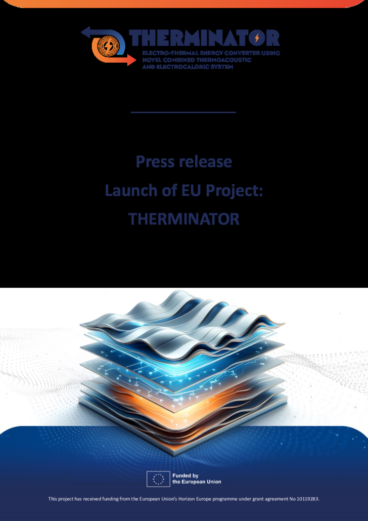 In this context, the THERMINATOR [Electro-thermal energy converter using novel combined thermoacoustic and electrocaloric system] project, funded by the European Union under Horizon Europe program, aims to develop a new energy conversion technology in the form of an efficient low-profile energy conversion “skin”. This technology will integrate thermoacoustic and electrocaloric systems to reduce energy loss and improve energy efficiency across various sectors.